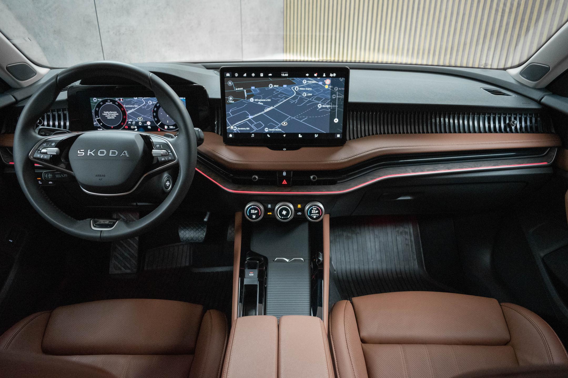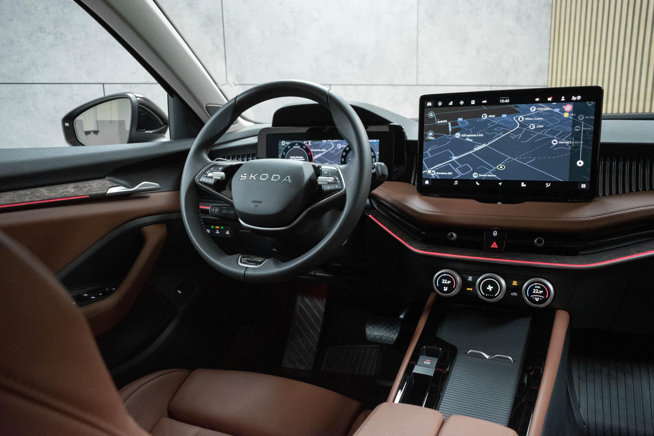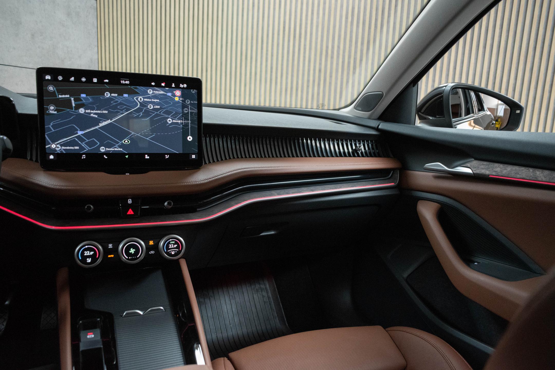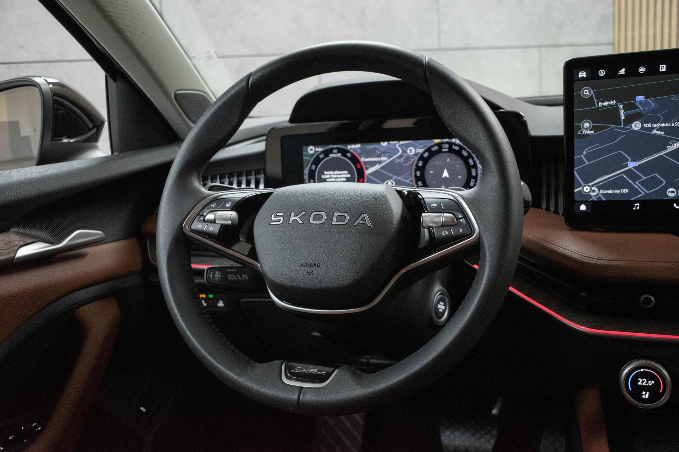 Vozidlo registrované jako nové v ČR od 1.majitele, s možností odpočtu DPH. Vůz v tovární záruce ŠKODA. Historie vozidla prověřena společností CEBIA, na vyžádání lze zaslat Cebia report mailem. Z volitelné výbavy: interiér L&K hnědý Cognac, Zpětné zrcátko/kamera s automatickou clonou, nastavitelný multifunkční volant, Vyhřívaná zadní sedadla, Vyhřívaná a odvětrávaná, el. nastavitelná přední sedadla, Elektricky nastavitelná vyhřívaná zpětná zrcátka, Rozpoznávání dopravních značek, Parkovací kamera zobrazující 360 stupňů, Startovací tlačítko, Automatická klimatizace ovládání klimatizace ze zadních sedadel , počet klimatizovaných zón: 3, Informace o parkovacím prostoru, Vyhřívané přední sklo, Vyhřívané ostřikovače, Vestavěné aplikace, Tempomat se senzory vzdálenosti, funkce stop & go, ACC spojený s navigací, ACC spojený s navigací-odbočování a ACC spojený s navigací-křižovatka, Systém hlasového ovládání výrobce vlastní a s AI inteligencí, Stěrače: s dešťovým sensorem, bezdrátového nabíjení, Integrace mobilního telefonu Apple CarPlay, Android Auto, MirrorLink, Elektronický diferenciál se zvýšenou svorností, Elektrický posilovač řízení s progresivním účinkem, Elektrické zavírání víka zavaz. prostoru, Bezdotykové uvolnění krytu zav.prostoru, Autonomní řízení 2 - částečná automatizace, aktivní kontrola jízdního pruhu, rozpoznávání dopravních značek, asistent/pilot pro jízdu na dálnici, asistent v dopravní zácpě, automaticky, reakce na dopravní značení město a reakce na dopravní značení mimo dálnici, Asistent rozjezdu do kopce. Tato nabídka má pouze informativní charakter a neslouží jako podklad pro uzavření objednávky. STOP CARS s.r.o. si vyhrazuje právo uzavření všech smluvních vztahů písemně.