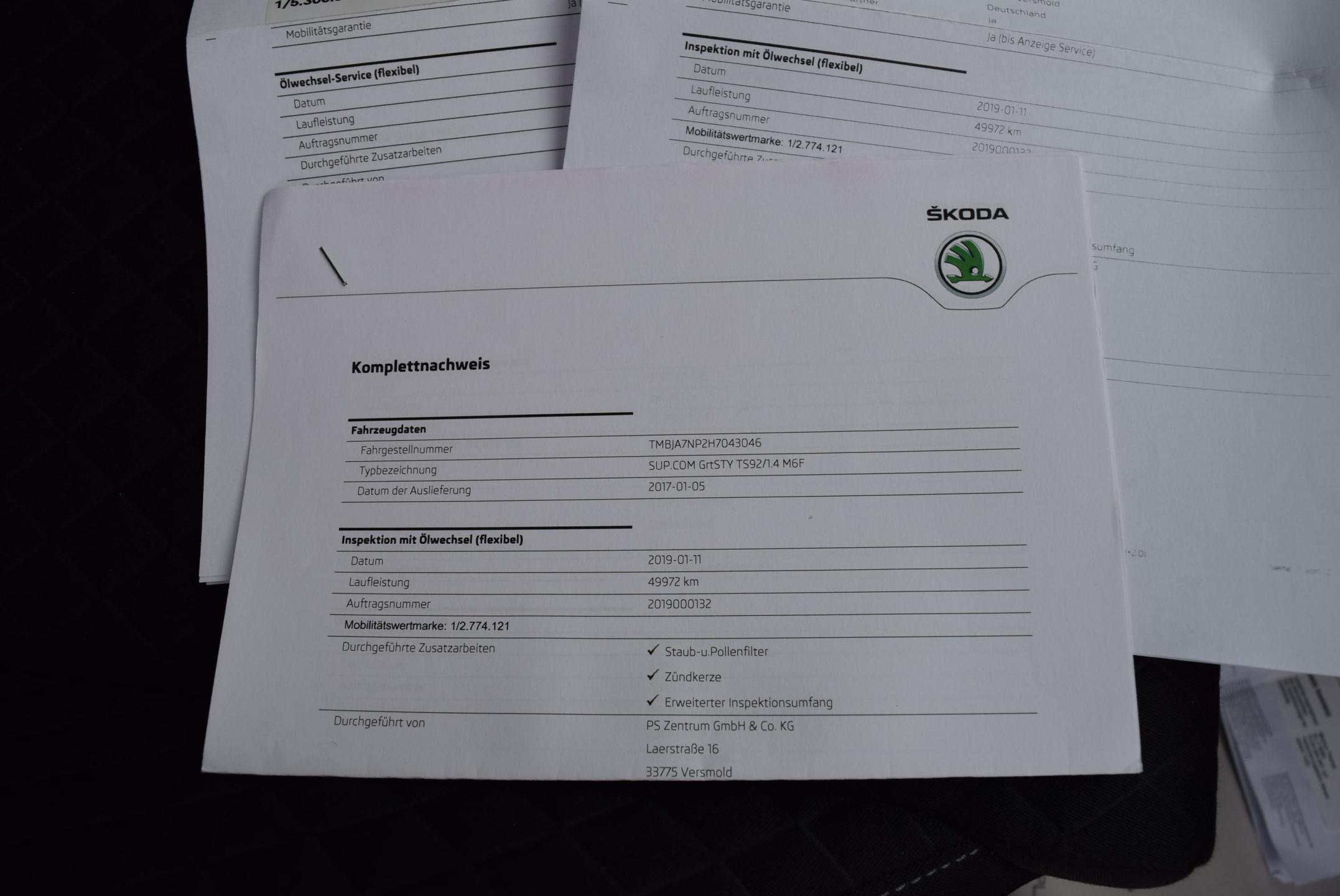 VIN:TMBJA7NP2H7043046; Země původu NĚMECKO; GARANCE UJETÝCH KM-doloženo ONLINE servisní knihou vedenou v autorizovaném servisu ŠKODA; pečlivě, pravidelně servisováno; Bohatá výbava STYLE, ALU kola orig ŠKODA; DVOUZÓNOVÁ, digitální automatická klimatizace; 2x VYHŘÍVANÁ SEDADLA přední; ESP-elektronická stabilizace podvozku; 4x el. stahovatelná okna; el. stavitelná+vyhřívaná + EL. SKLOPNÁ zrcátka; el. přední sedadla + možnost nastavení paměti sedadel; Frontassist; TEMPOMAT; MULTIFUNKČNÍ kožený tříramenný volant; PARKTRONIC - parkovací senzory vzadu; xenony + LED denní svícení; mlhovky, Sound&Multimédia systém orig ŠKODA s velkým barevným dotykovým displejem, NAVIgací, rádiem, výstupy, USB, AUX&SD Card+BLUETOOTH konektivitou vč. handsfree, SMARTLINK, Android a Apple car play; loketní opěrka přední + zadní; HAGUSY; Chrompaket; bezkontaktní dobíjecí přihrádka na mobilní telefon; Technicky i motoricky v perfektním stavu; Karoserie zachovalá, velmi krásný lak, interiér nekuřák !! Interiér bez známek opotřebení; DOŽIVOTNÍ ZÁRUKA NA PRÁVNÍ PŮVOD A NAJETÉ KM. ZÁRUKA 1 ROK NA MOTOR + PŘEVODOVKU.