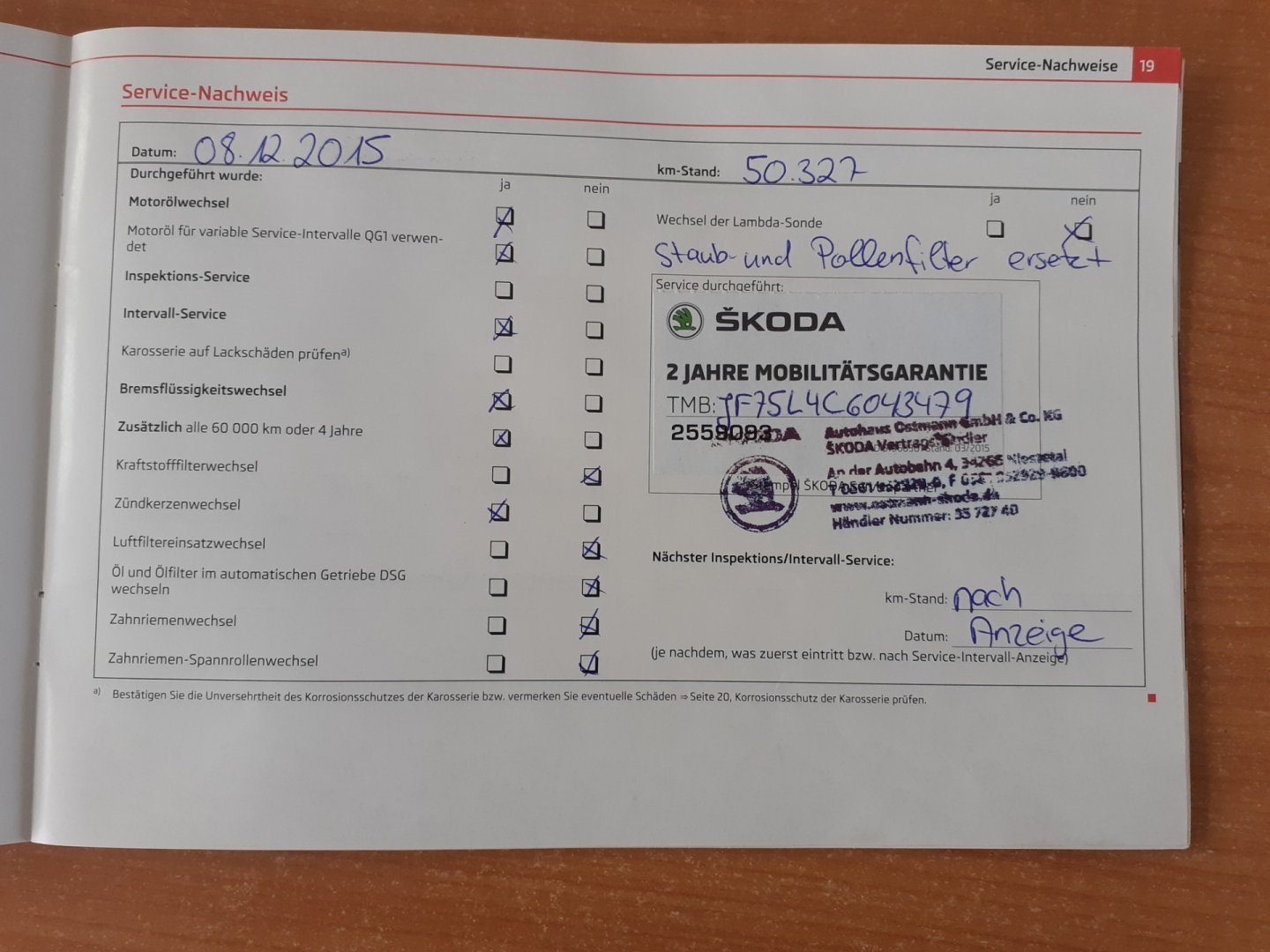 Servisní knížka ,PO SERVISU .