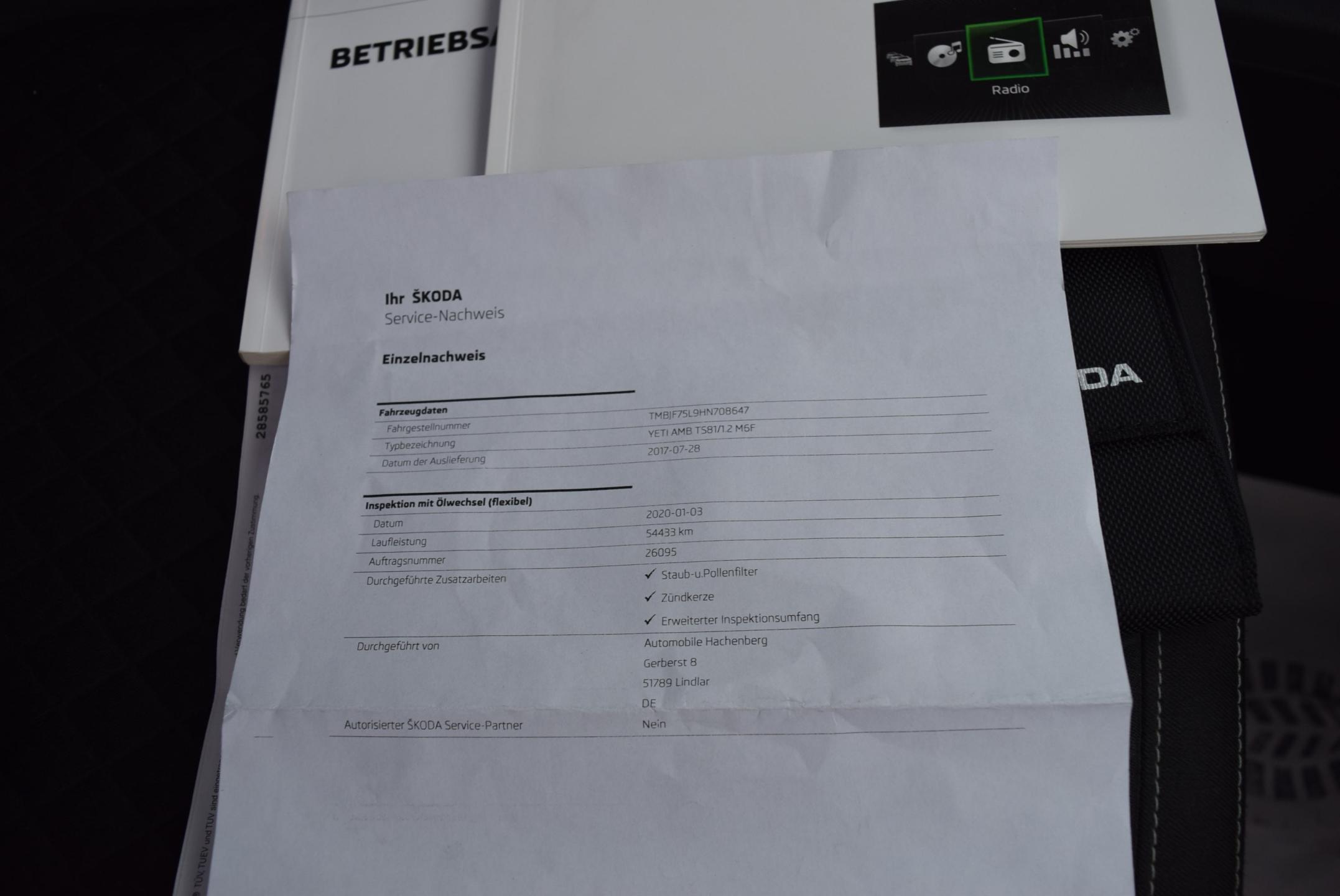 VIN:TMBJF75L9HN708647, země původu NĚMECKO, po 1. majiteli; GARANCE UJETÝCH KM - doloženo kompletně vedenou ONLINE servisní knihou; PRAVIDELNĚ A PEČLIVĚ SERVISOVÁNO, VÝBAVA AMBITION, z edice DRIVE: digitální automatická DVOUZÓNOVÁ klimatizace; 2x VYHŘÍVANÉ přední SEDAČKY; 4x el. STAHOVATELNÁ okna; el. stavitelná a VYHŘÍVANÁ + el. sklopná ZRCÁTKA; ESP-elektronická stabilizace podvozku; mlhovky, BiXENONY + automatické denní svícení; ostřikovače předních světlometů; příplatkový SOUNDSYSTÉM orig. ŠKODA s dotykovým rádiem; přehrávačem a NAVIGACÍ; výstupem AUX + USB + SD CARD, BLUETOOTH rozhraním vč. HANDSFREE, konektivita Bluetooth s podporou SmartLink, konektivita přes APP AndroidAuto a AppleCarPlay; HAGUSY, tříramenný multifunkční KOŽENÝ volant, loketní opěrka přední; palubní počítač; Designová ALU kola orig. Škoda; SCOUT prvky na předním a zadním nárazníku; parkovací senzory PŘEDNÍ + ZDNÍ + parkovací kamera; odnimatelné tažné zařízení; TECHNICKY i MOTORICKY ve výborném stavu; karoserie bez koroze !! škrábanců a parkovacích důlků; Interiér bez známek opotřebení; DOŽIVOTNÍ ZÁRUKA NA PRÁVNÍ PŮVOD A NAJETÉ KM. záruka 1 rok na MOTOR + PŘEVODOVKU.