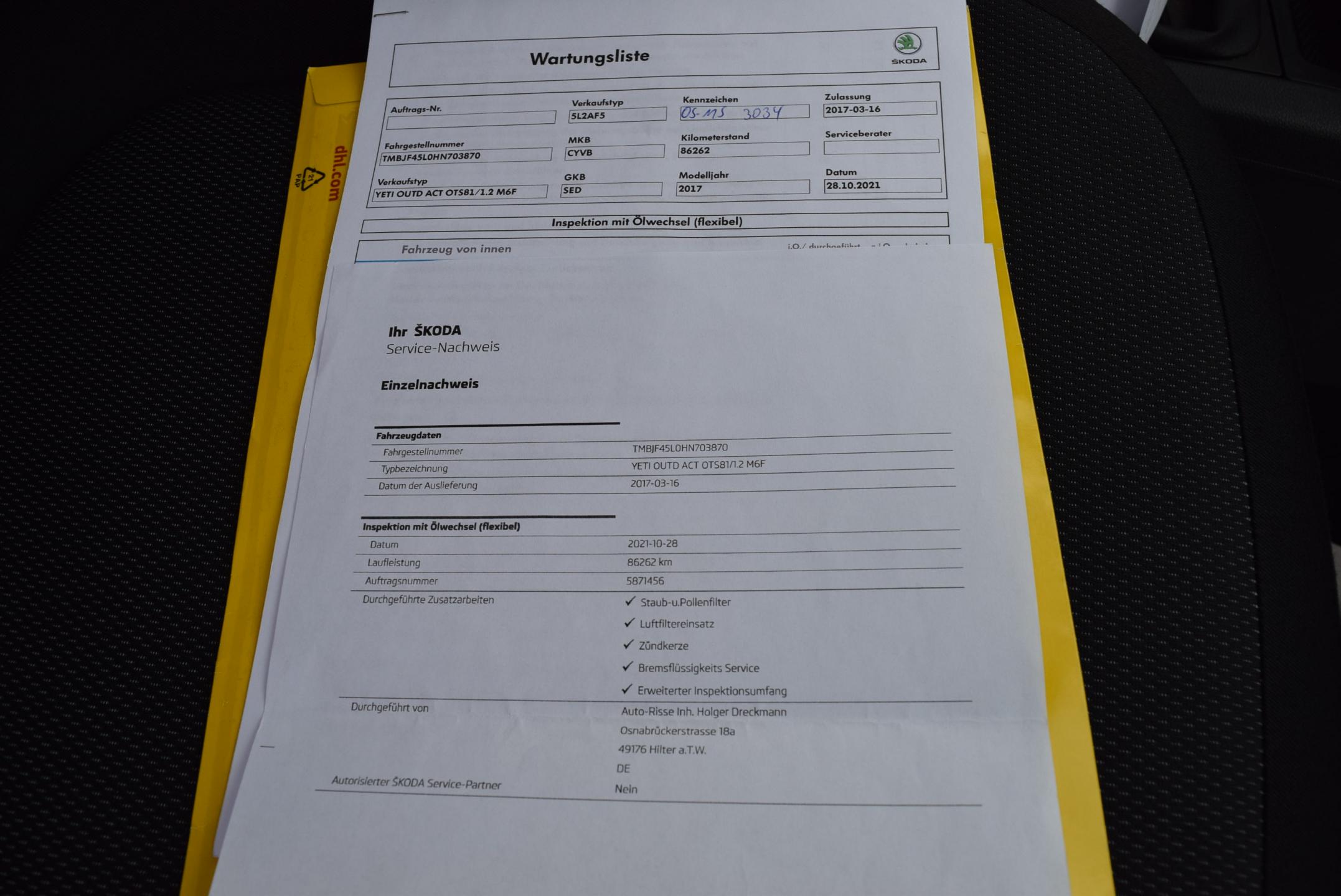 VIN:TMBJF45L0HN703870, země původu NĚMECKO, GARANCE UJETÝCH KM-doloženo kompletně vedenou servisní knihou - faktury za provedené servisy; VÝBAVA OUTDOOR ACTIVE: outdoorové prvky spodní části - oplastování spodních nárazníků; manuální klimatizace; VYHŘÍVANÉ SEDAČKY přední; 2x el. stahovatelná okna; el. stavitelná a VYHŘÍVANÁ ZRCÁTKA; ESP-elektronická stabilizace podvozku; mlhovky, ostřikovače předních světlometů; rádio s DOTYKOVÝM displayem, s přehrávačem, možnost propojení konektivity s chytrým telefonem, podporou APP, NAVIGACE; výstupy USB + AUX; hagusy, tříramenný KOŽENÝ volant, palubní počítač; odnimatelné tažné zařízení origo Škoda; plnohodnotné rezervní kolo; ISOFIX; parkovací senzory zadní; Technicky i motoricky v zachovalém stavu; karoserie bez koroze, Interiér bez známek opotřebení; DOŽIVOTNÍ ZÁRUKA NA PRÁVNÍ PŮVOD A NAJETÉ KM, záruka 1 ROK na motor a převodovku.