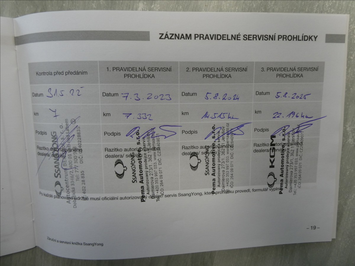 Servis pouze v autorizovaném servise SSangYong. Velmi hezký stav + vzhled.