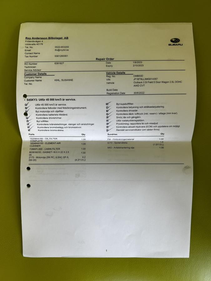 Subaru Outback 2.5 FIELD 2022 Zaruka1R