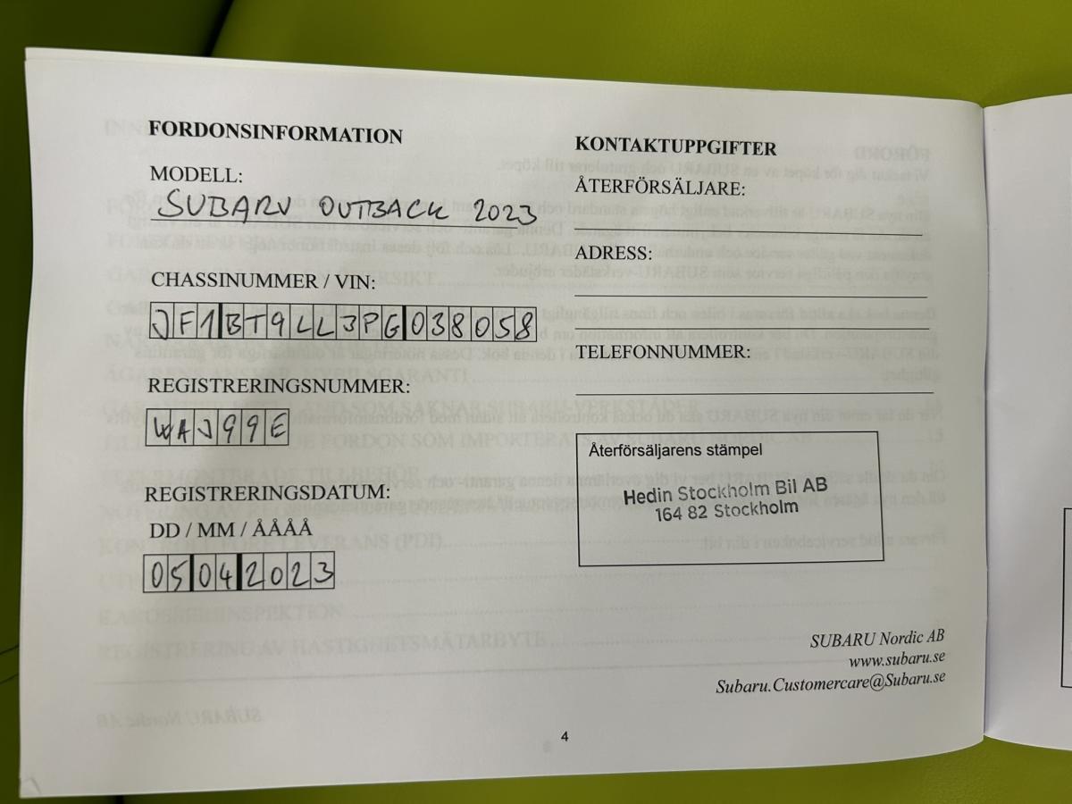 Nový vůz, skladem na showroomu v Praze (Hostivice), okamžitě k dodání. Modelový rok 2023, záruka platná od 5.4.2023. Bronzová metalíza + černá kůže Nappa. Maximální výbava Touring. Gumové koberce v ceně vozu. Na přání namontujeme tažné zařízení, nebo jiné SUBARU příslušenství. Dovezeno přímo ze Subaru Nordic. Více info na ---www.eurocng.cz---