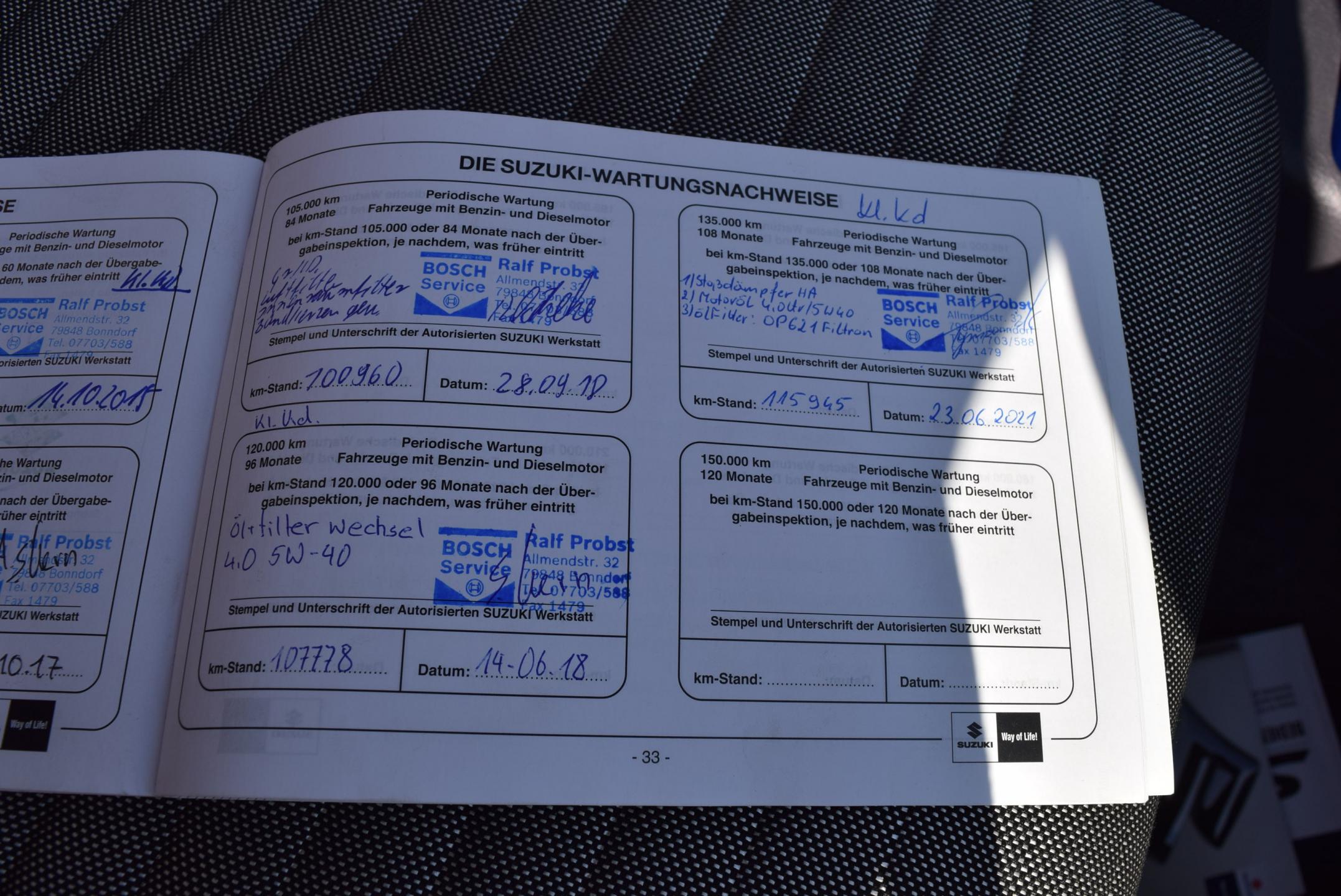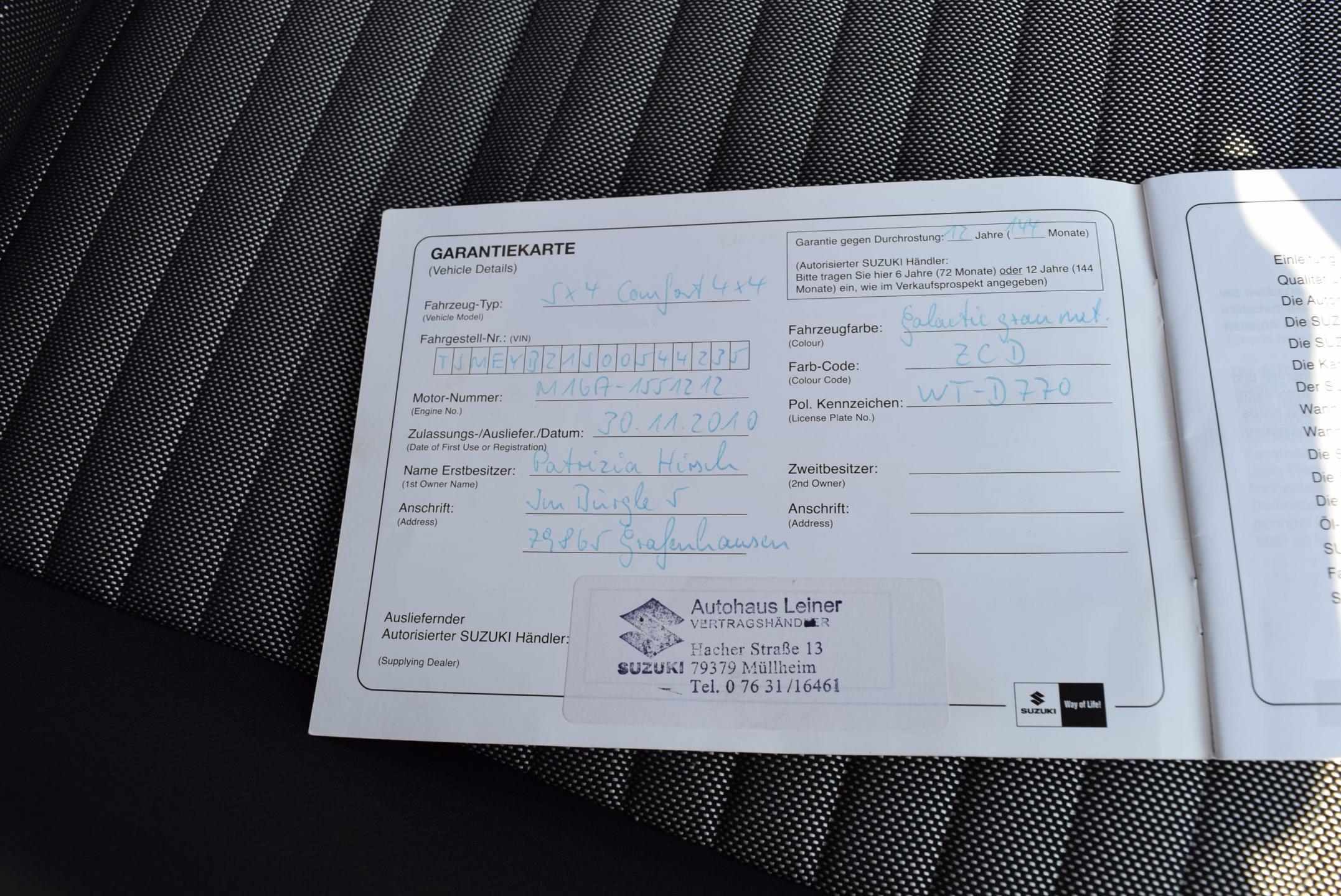 VIN:TSMEYB21S00544235, země původu NĚMECKO, GARANCE UJETÝCH KM-doloženo KOMPLETNĚ vedenou servisní knihou; SERVISOVÁNO výhradně v servisu SUZUKI a Bosch service; vozidlo má zánovní zadní brzdy, nové pneumatiky zn. Barum; NASTAVITELNÝ POHON 4x4(možnost jízdy 2WD, 4WD nebo automaticky); Výbava STYLE CLASSIC: Automatická digitální klimatizace; VYHŘÍVANÉ SEDAČKY přední; ESP-elektronická stabilizace podvozku; 4x el. okna; el. stavitelná + VYHŘÍVANÁ ZRCÁTKA ; kožený volant; ALU KOLA orig. SUZUKI; hagusy; SOUND systém orig. SUZUKI, s rádiem, CD přehrávačem; bezklíčkové odemykání a startování; dojezdové kolo; Technicky i motoricky v perfektním stavu; Karoserie bez koroze, ve velmi zachovalém, udržovaném stavu; hezký lak; Interiér bez známek opotřebení; DOŽIVOTNÍ ZÁRUKA NA PRÁVNÍ PŮVOD A NAJETÉ KM, záruka 1 ROK NA MOTOR A PŘEVODOVKU.