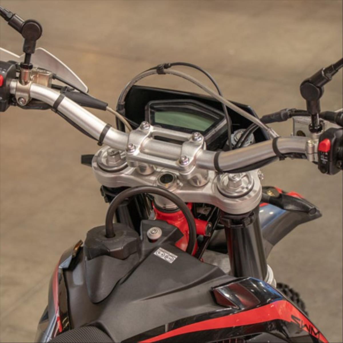 VYUŽIJTE NAŠE VÝHODNÉ FINANCOVÁNÍ. Stroj na objednání! Dostupné barvy: Červená-Černá / Červená-Bílá. Endruro vhodné pro legální použití jak na běžných cestách tak v terénu. Po drobných úpravách je motocykl vynikající v terénu a je vhodný pro Hard Enduro (po úpravě na Hard Enduro 38 kW (51 hp). Kapalinou chlazený 4taktní jednoválec se 2 vačkami a 4 ventily. Nastavitelná vidlice KAYABA Upside-Down O 48 mm. Progresivní nastavitelný zadní tlumič KAYABA. Brzdy BREMBO. Pneu Michelin Competition.