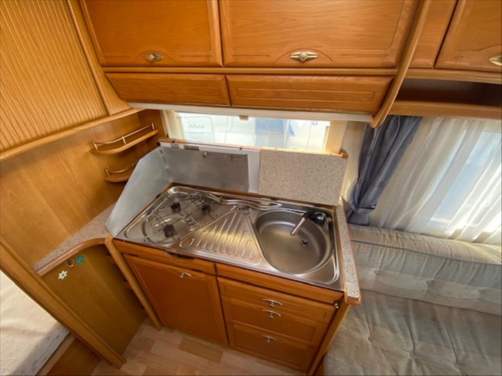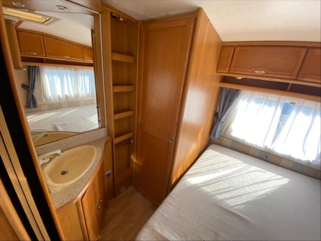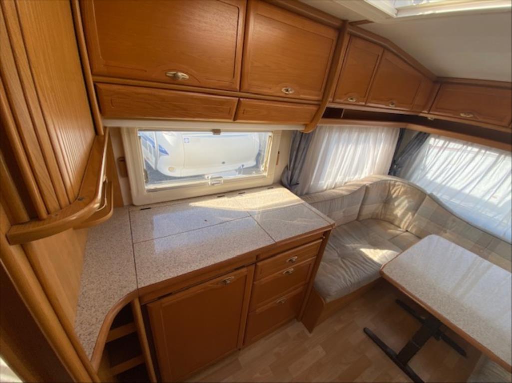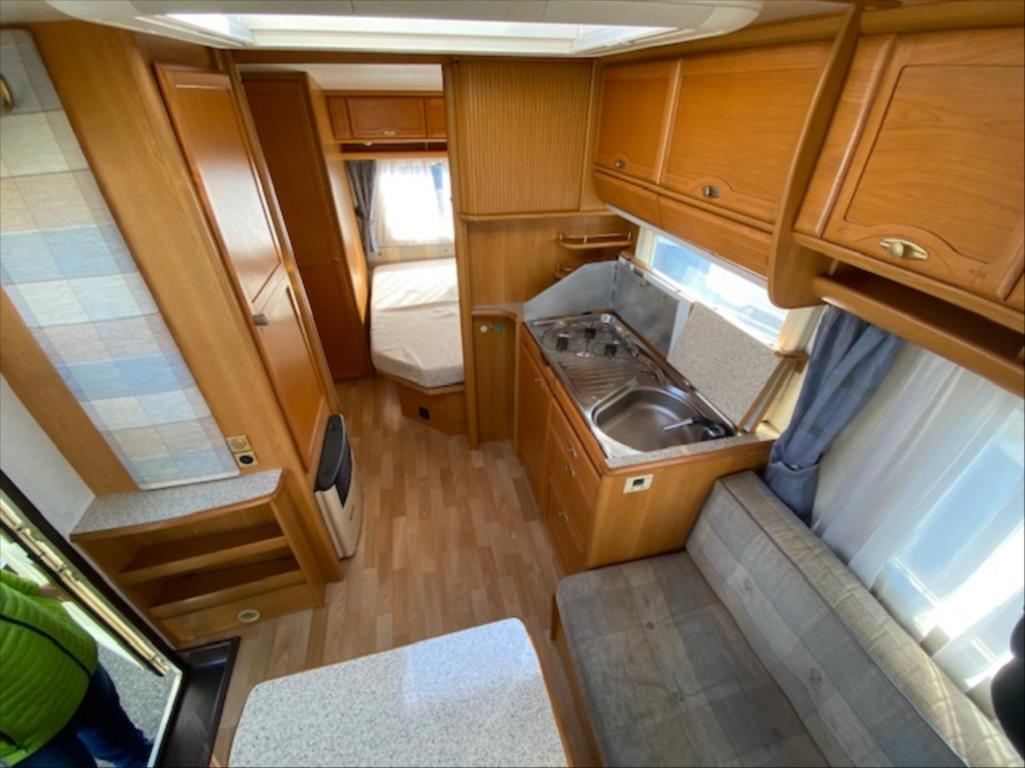V karavanu je k dispozici francouzské lůžko v zadní části, kruhové sezení rozložitelné na spaní pro až 3 osoby, ohřev teplé vody, lednice s mrazákem, 3 plotýnkový vařič LPG, topení Truma s rozfukem, kazetové WC Thetford a venku je k dispozici markýza a držák na 2 jízdní kola. Interiér je suchý a čistý! D: 6627mm, Š: 2320mm, V: 2620mm, váha: 1500kg YouTube video: https://www.youtube.com/watch?v=hyJOiObmZPY K22
