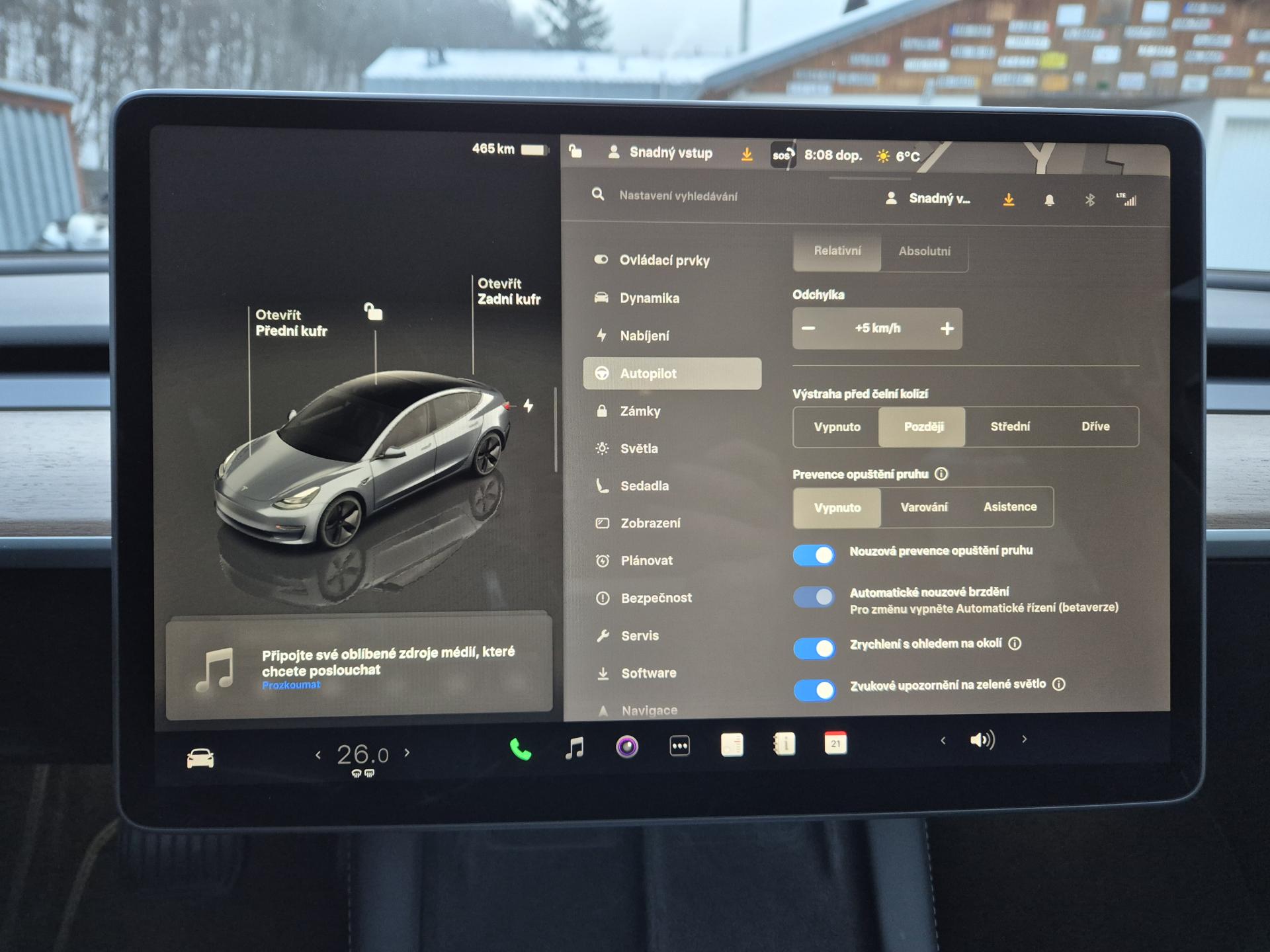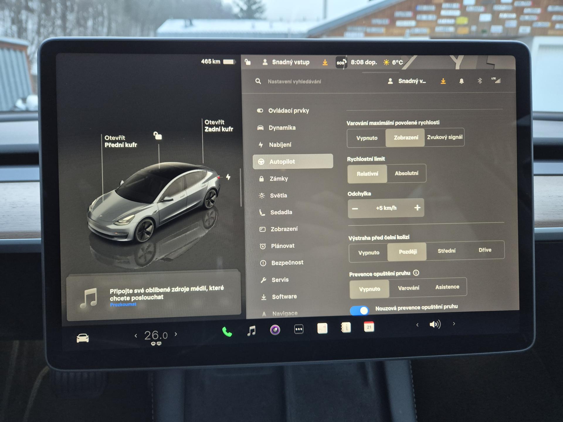 - hlídání jízdního pruhu