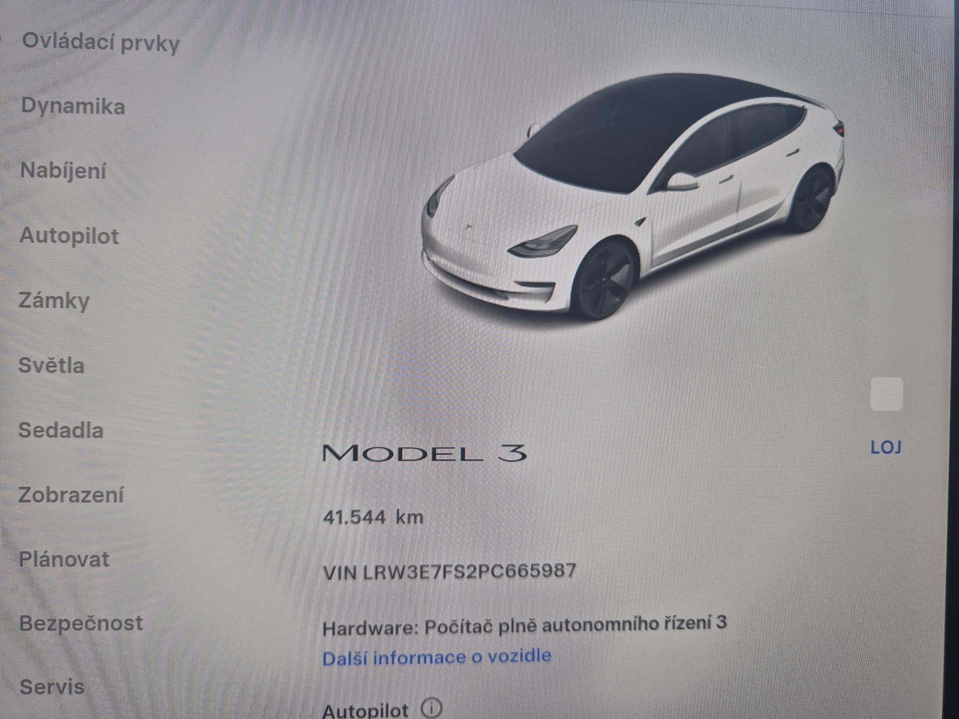 VIN: LRW3E7FS2PC665987, model 2023, 1. reg. 09.12.2022, SOH cca 98 % kapacity akumulátoru, procesor infotainmentu - AMD Ryzen, specifikace: Autopilot, 18 ALU Aero, sat. navigace Premium, výbava do chladného počasí - vyhřívané přední sedačky + čelní sklo + volant. Tovarní záruka vyprší 22.12.2026 nebo po ujetí 80.000 km podle toho co nastane dříve. Záruka na Akumulátor a hnací ústrojí vyprší 22.12.2030 nebo po ujetí 160.000 km podle toho, co nastane dříve. Prodávající prohlašuje, že pokud bude po uzavření této kupní smlouvy jakýmkoliv způsobem shledáno (např. společností CEBIA s.r.o. nebo např. Policií ČR), že původ vozu, stav kilometrů (od předešlého majitele) a zápisy v servisní knize nesouhlasí s provedenými kontrolami bude kupujícímu prodávajícím vrácena plná výše kupní ceny ihned. Termín prohlídky vozidla nutno domluvit předem !