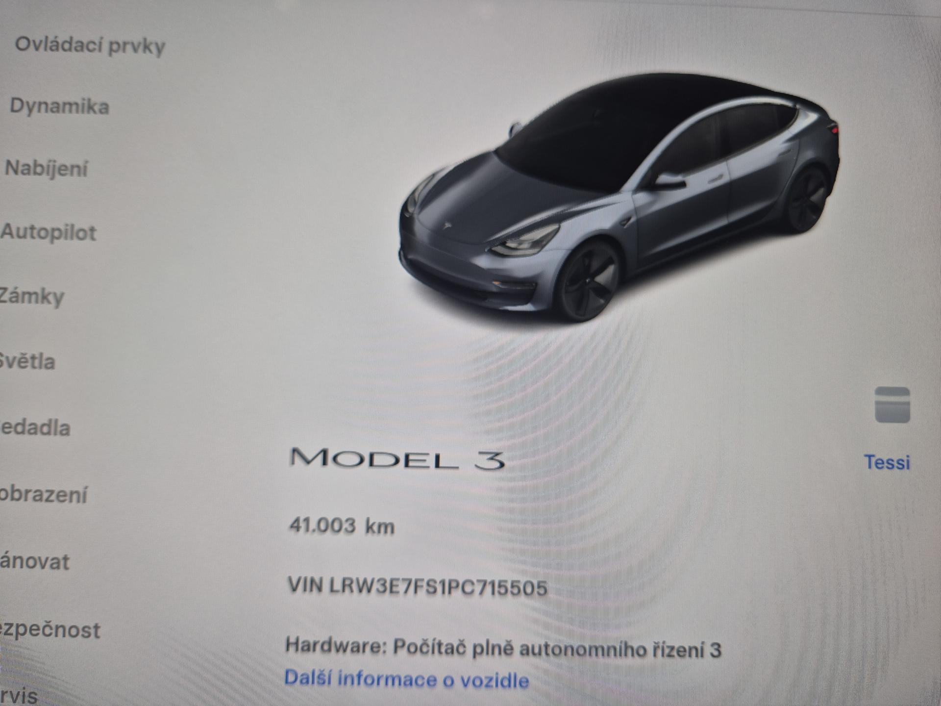 VIN: LRW3E7FS6PC715505, model 2023, 1. reg. 19.12.2022, SOH cca 99 % kapacity akumulátoru, procesor infotainmentu - AMD Ryzen, specifikace: Autopilot, 18 ALU Aero, sat. navigace Premium, výbava do chladného počasí - vyhřívané všechyn sedačky + čelní sklo + volant. Tovarní záruka vyprší 31.12.2026 nebo po ujetí 80.000 km podle toho co nastane dříve. Záruka na Akumulátor a hnací ústrojí vyprší 31.12.2030 nebo po ujetí 160.000 km podle toho, co nastane dříve. Prodávající prohlašuje, že pokud bude po uzavření této kupní smlouvy jakýmkoliv způsobem shledáno (např. společností CEBIA s.r.o. nebo např. Policií ČR), že původ vozu, stav kilometrů (od předešlého majitele) a zápisy v servisní knize nesouhlasí s provedenými kontrolami bude kupujícímu prodávajícím vrácena plná výše kupní ceny ihned. Termín prohlídky vozidla nutno domluvit předem !