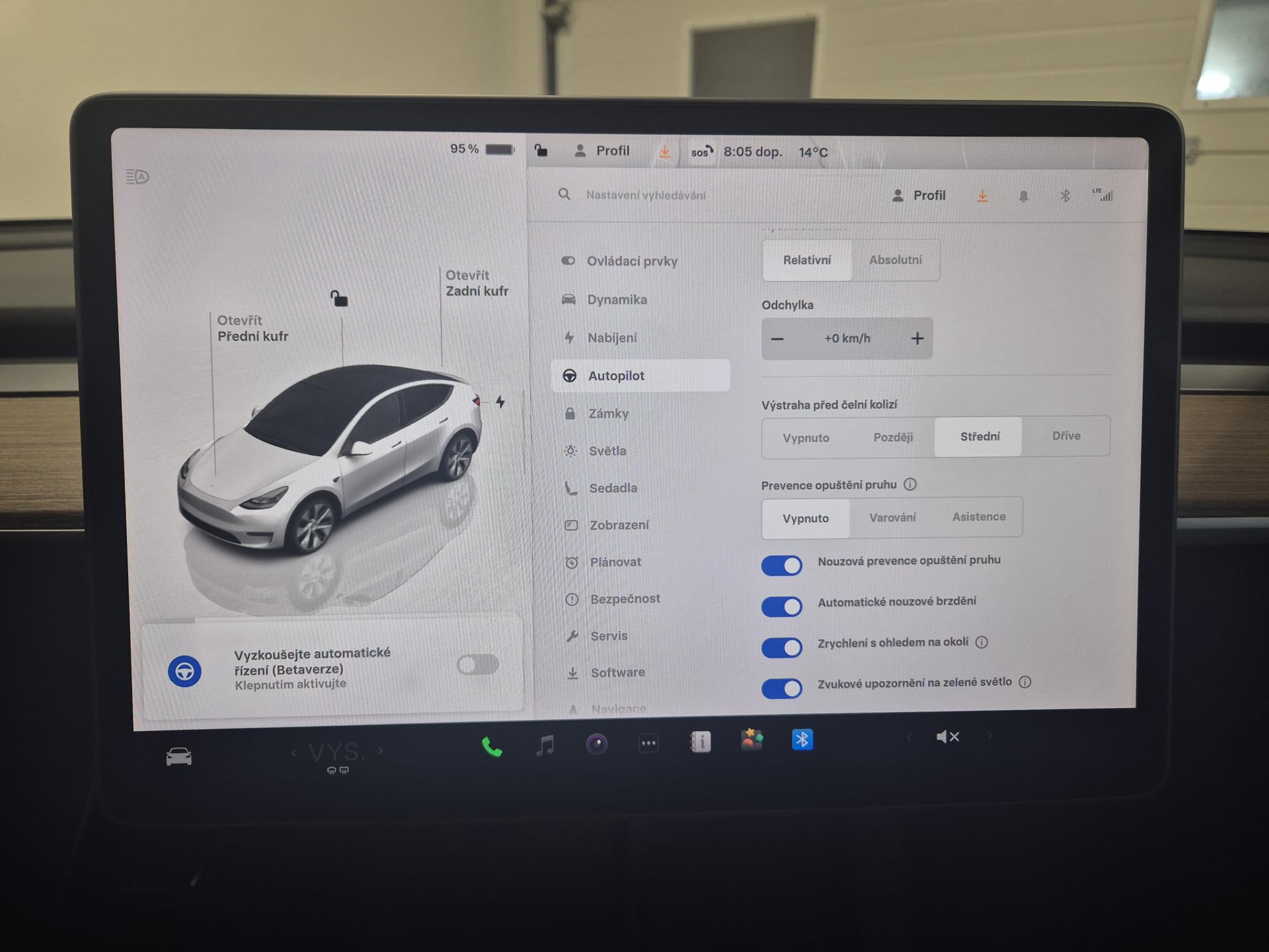 - hlídání jízdního pruhu