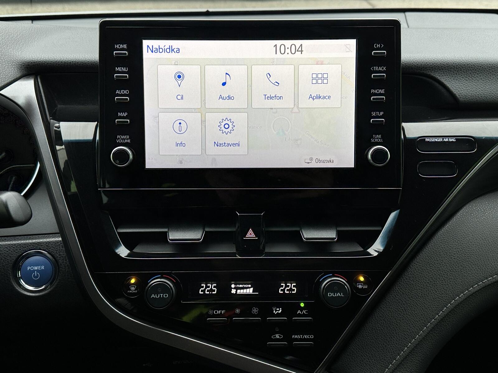 11/11100 Toyota Camry Executive 2.5 Hybrid AT 131kW/178PS, Automatická převodovka, Výbava vozu: Potah sedadel – kůže, El. nastavitelná přední sedadla, El. nastavitelný volant, Vyhřívaný multifunkční volant s pádly řazení, Navigační systém, Digitální palubní počítač, Bezdrátové dobíjení telefonu, Wi-Fi, Adaptivní tempomat – ACC, Asistent hlídání mrtvého úhlu, Asistent sledování provozu za vozidlem při vycouvávání, Čelní asistent varování před střetem s vozidly, chodci a cyklisty, Asistent vedení v jízdním pruhu, Rozpoznávání dopravních značek, Parkovací kamera, Parkovací senzory vpředu a vzadu – PDC, Bezklíčové zamykání a startování, Vyhřívání sedadel vpředu, Vyhřívané čelní sklo, Dvouzónová automatická klimatizace, Volba jízdních režimů, Bi-xenonové přední světlomety, Asistent dálkových světel, LED denní svícení, El. sklopná a nastavitelná vnější zpětná zrcátka – vyhřívaná, Zatmavená zadní okna, Hlasové ovládání, Bluetooth, DAB, USB, El. parkovací brzda s funkcí Auto-Hold, Nouzové volání SOS, 7x airbag, El. stabilizační systém – ESP, Isofix, Automatické svícení, El. stahování předních oken, Servisní kniha + dokumentace, Možnost odpočtu DPH 21%, Skladem - ihned k odběru.