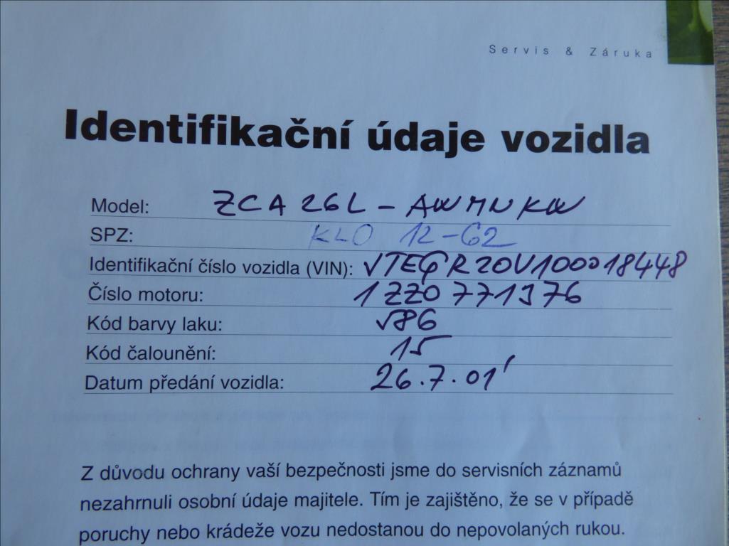 koupneo ČR, servisní knížka, alu kola, tažné zařízení na 1.000 kg, loketní opěrka, VIN: JTEGR20V100018448