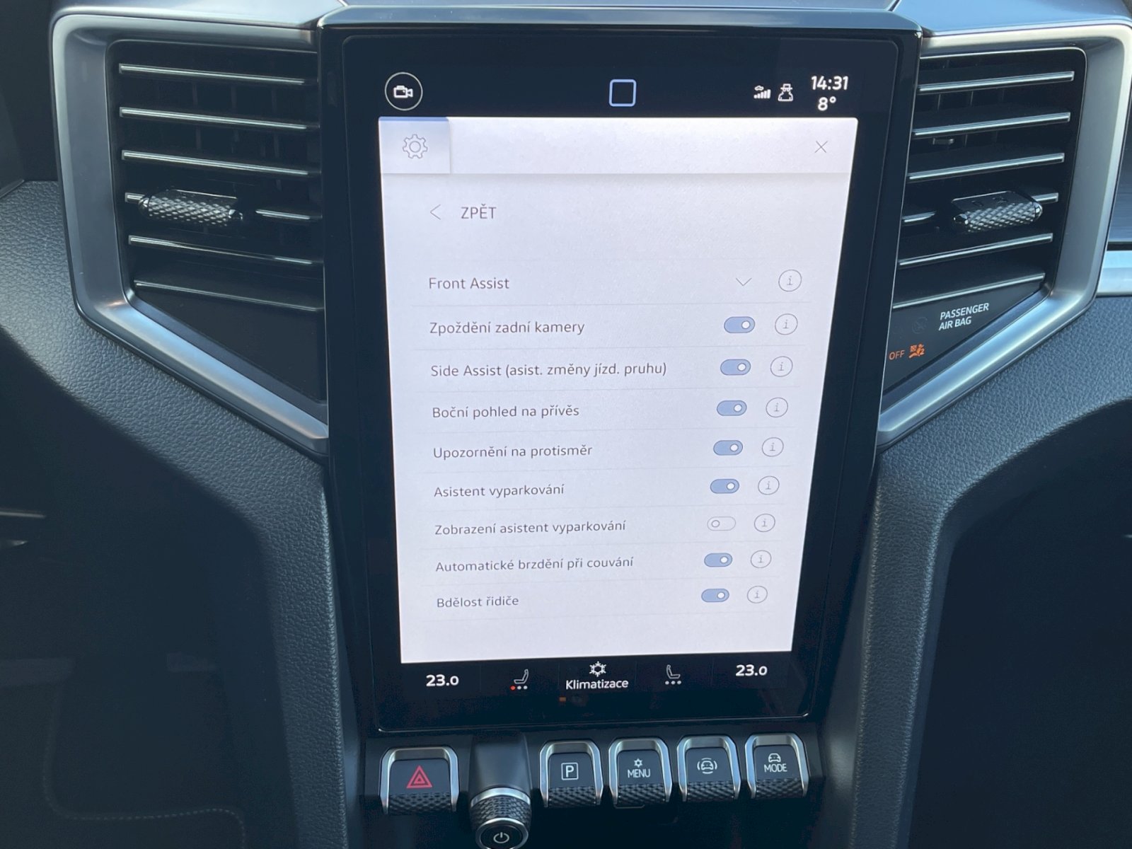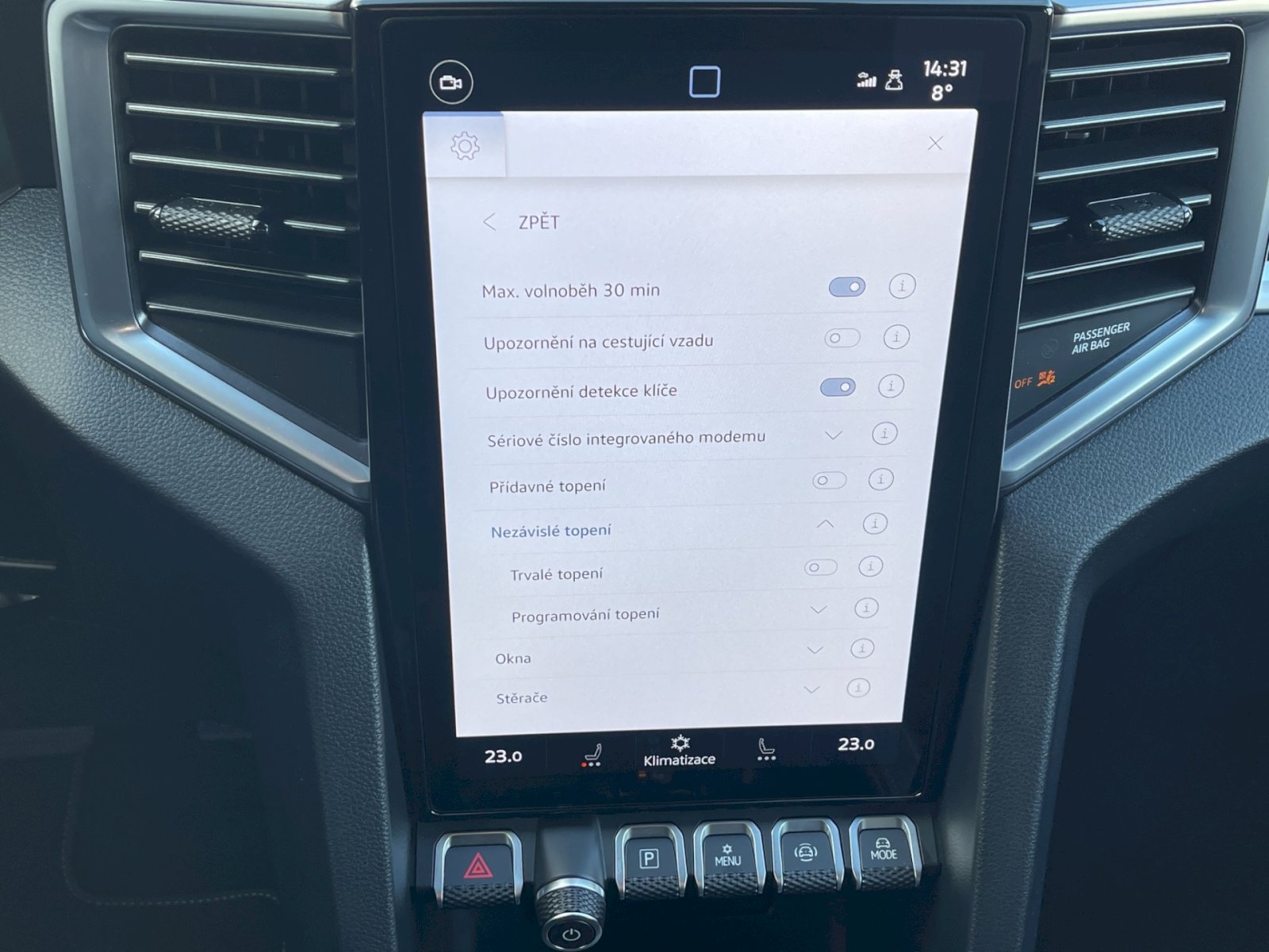 - dvouzónová klimatizace