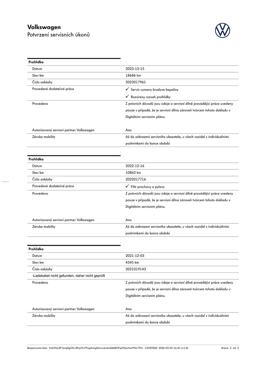 | Historie | Zobrazit historii vozu |