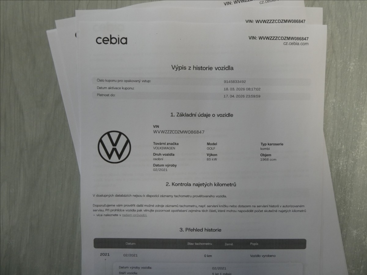 Kilometry a původ vozidla ověřeno přes portál Cebia, viz. foto. Servis pouze v autorizovaném servise VW. Stav nového vozu!!! K vozidlu sada zimních pneu + disk. Bohatá výbava, např. vyhřívaný volant + sedačky, adaptivní tempomat, přední a zadní parkovací senzory, Apple CarPlay a Android Auto, isofix na přední sedačce, atd.