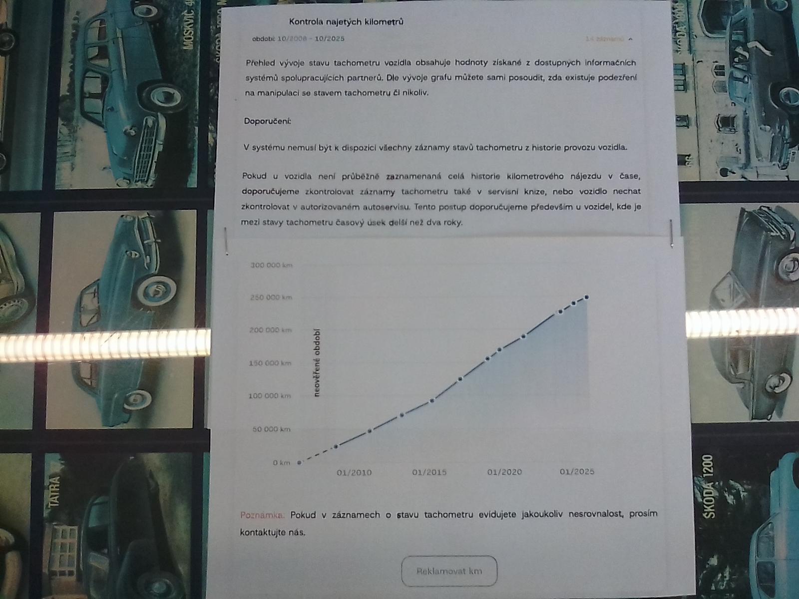 | Historie | Zobrazit historii vozu |
