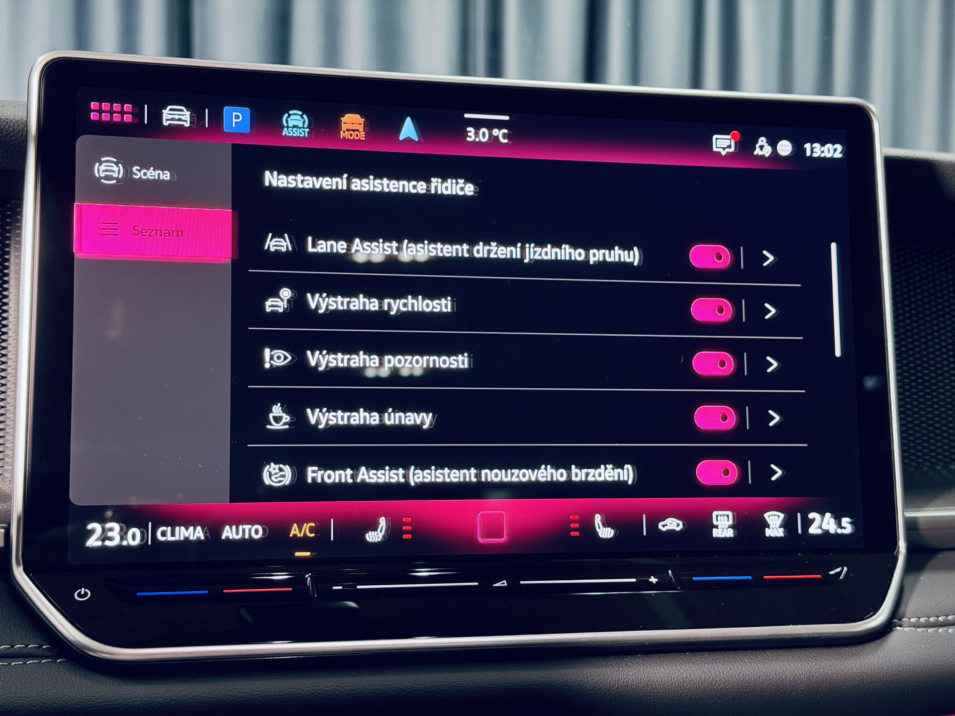 - asistent změny jízdního pruhu