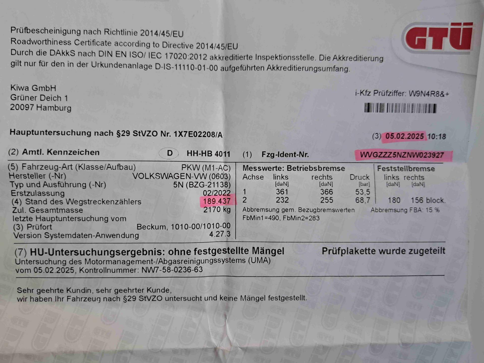 | VIN | WVGZZZ5NZNW023927 |