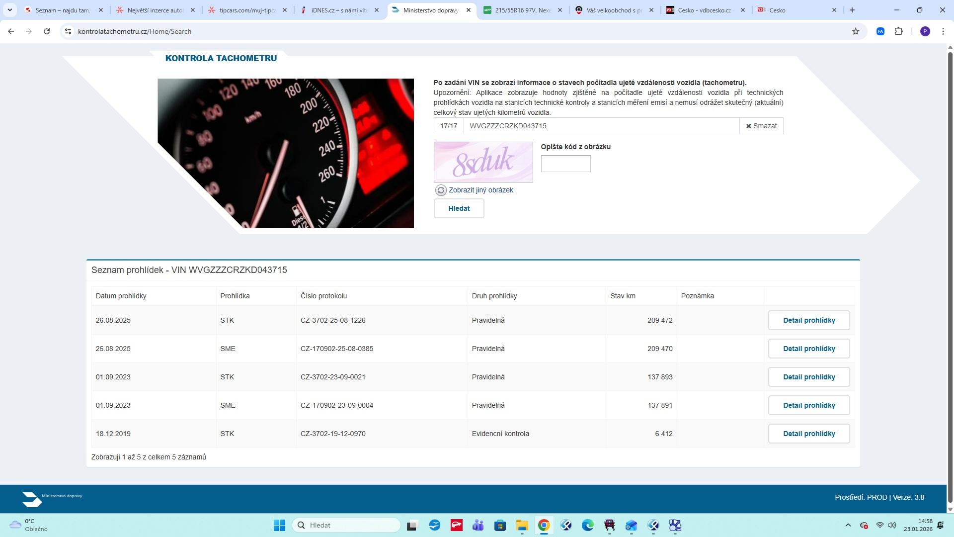 | Historie | Zobrazit historii vozu |