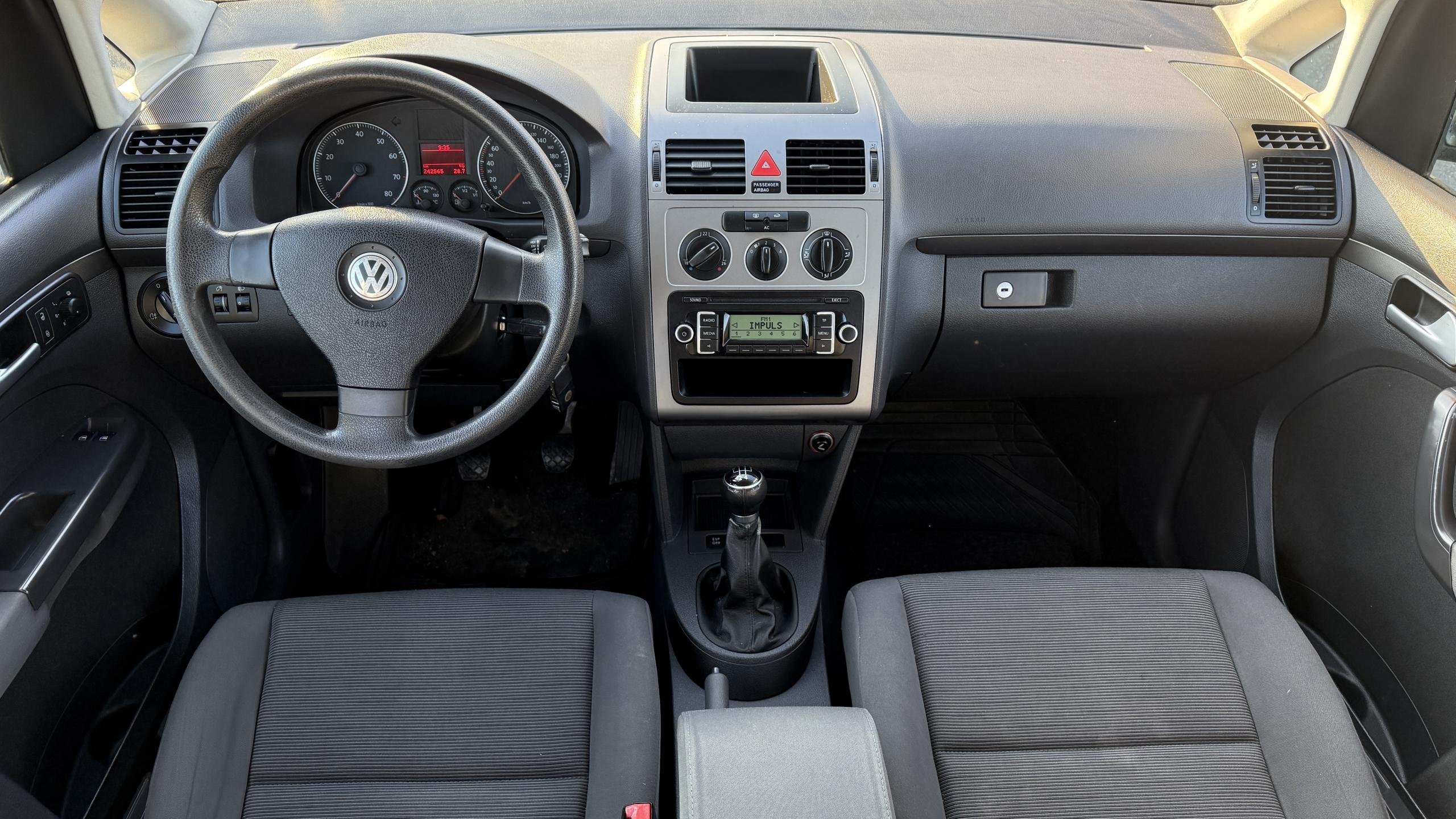 VOLKSWAGEN TOURAN 1.6 MPI 75KW 105PS S MANUÁLNÍ PŘEVODOVKOU A POHON BENZÍN/ LPG (REVIZE 10/2025 ) NÁDRŽ DO 2028 REGISTRACE VOZU 07/2008 NAJETO 242 TIS KM , ZIMNÍ PNEUMATIKY, SUPER LEVNÝ PROVOZ ..MÍSTY JE POVRCHOVÁ KOROZE NA PŘEDNÍCH BLATNÍKÁCH .. JINAK DOBRÝ STAV ..VŠE PLNĚ FUNKČNÍ VIN: WVGZZZ1TZ9W010129 ROZVODY DĚLANÉ PŘI 208 TIS KM